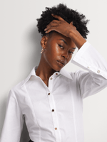 A white shirt is a style staple. Our Fluted Sleeve Cut Lines Fitted Shirt has a flattering fit and on-trend details to elevate your outfit. Wear it with smart trousers or a tailored mini skirt.
