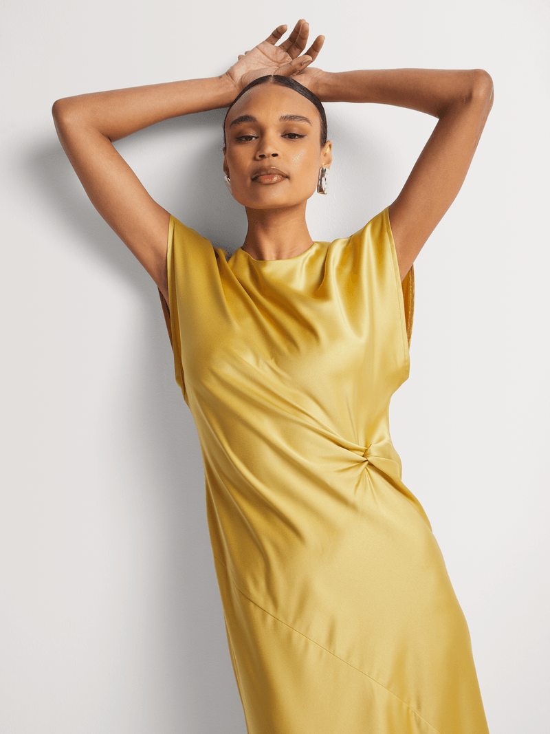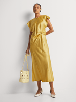 Detailed and stylish, our Flutter Sleeve Knot Detail Column Dress is made from smooth satin with a beautiful sheen. Flutter sleeves and knot detail create movement and elevate the fabric's fluid drape. Wear it with strappy heels and delicate jewellery.