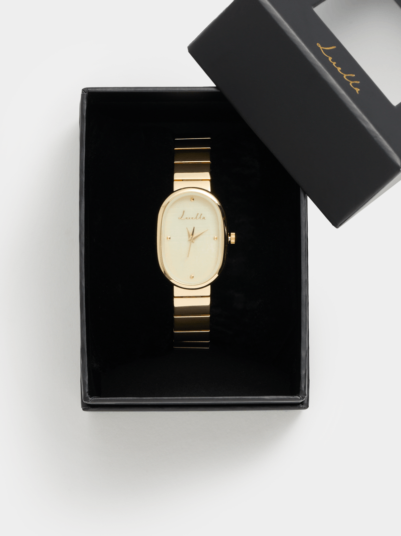 Introducing the Luella Oval Watch, featuring a soft gold metal stretch strap for a comfortable fit. Designed with style and comfort in mind, this watch is the perfect accessory for any outfit. Experience timeless elegance with the Luella Oval Watch.