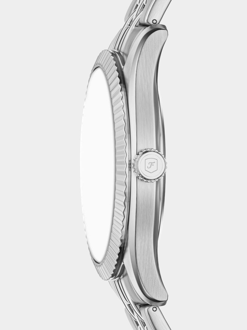 A modern classic with timeless appeal, the Campbell watch balances form and function. It's stainless steel case houses a rich blue sunray dial with a day and date window to keep you on schedule. Thoughtfully crafted with polished details, this bracelet watch strikes a balance between sleek materials and modern functionality.