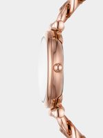Our wear-everywhere Carlie collection balances casual style with a hint of sophistication. With a redesigned '90s-inspired T-bar and stunning new bracelet design, it features a round 28mm rose Gold-tone Stainless Steel case and a Silver sunray dial with luminous hands and Roman numeral and stick indices.