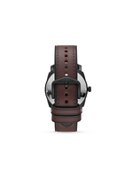 This 42mm Machine features a black sunray and textured dial, three-hand date movement and brown leather strap.