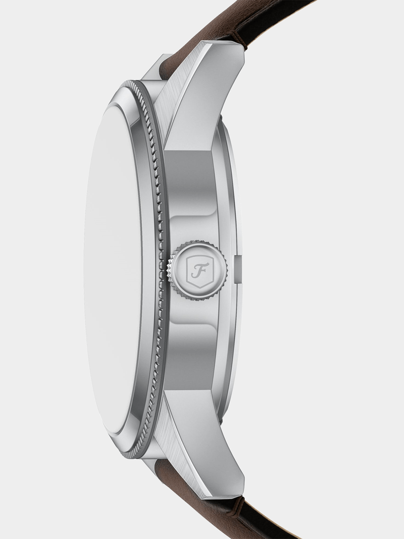 A stainless steel-tone case frames a green dial with sunray finishing, creating subtle texture and depth. The green dial features a sunray finish for added depth, complemented by practical sub-dials for day, date, and 24-hour functionality. Paired with a rich brown leather strap, it combines everyday comfort and polished craftsmanship. Thoughtful material choices and a balanced design make this watch a refined addition to your accessories lineup.