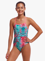 You’ll be sure to get noticed on pool deck in our strappiest one piece yet! Single strap binds that criss cross down your back with a moderately high cut leg.