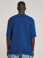 This boxy-fit blue T-shirt is made from soft cotton jersey and features a clean center chest graphic. With its relaxed silhouette and classic crew neckline, it delivers effortless comfort and a modern streetwear edge.