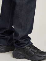 Jean Dakota Logger is cut in a regular straight fit, offering extra room at the top block for a laid-back silhouette. Functional details include a zipper pocket at the back, a tool pocket at the side, and a raised coin pocket.