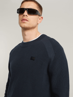 Sweater Detailed comes in a straight fit and features an engineered knit. Contrasting structures at the elbow and shoulder add a modern twist to this clean silhouette.