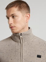 The Double Collar Knitted Sweater Jacket is designed in a straight fit and features a raised collar for added warmth. The ribbed texture throughout brings depth and character to this clean, minimal silhouette.