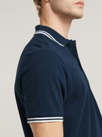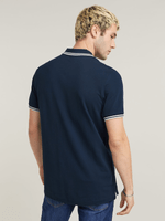 Smart and refined, the Dunda Striped Polo features a sleek slim fit with a classic ribbed collar and sleeve hems, accented by subtle stripe detailing. A modern take on a timeless essential, perfect for effortless styling.