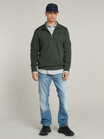 This premium half zip sweater features a raised collar and a clean, minimalist silhouette. The sleeves are designed with a curved finish, subtly revealing the ribbed cuffs underneath. Ribbed detailing at the sides and bottom hem adds structure and comfort, making it a versatile layering piece.