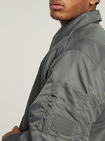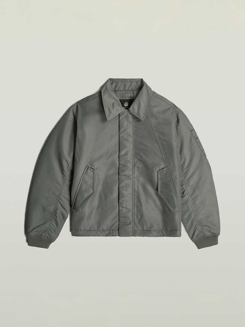 The G-Star Men's Lune Nylon Padded Bomber Jacket in grey offers a sleek, modern design perfect for versatile styling. Featuring a regular fit and crafted from 100% polyamide, it boasts a high-shine finish, ribbed cuffs and hem, and prominent zip closure. Side pockets provide functionality, making it ideal for daily wear.