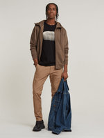 The Premium Core Zip-Through Jogger Jacket features a hood with a raised front and adjustable drawstrings. Designed with curved sleeves and ribbed cuffs, it offers a comfortable and streamlined fit.