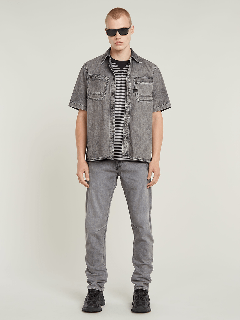 Denim shirt Slanted Double Pocket is created in a straight fit offering short sleeves. Use the button to create a shorter sleeve. The chest pockets are placed in an angled position. One of these offers an additional pocket within.