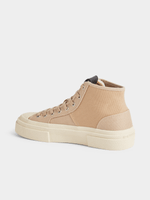 The Vodan sneaker is designed in a mid cut and offers flat laces. The combination of different structures and the raised sole with toe cap add detail.