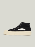 Designed for contemporary urban style, the Vodan Sneaker combines a mid-cut profile with flat laces reinforced by metallic eyelets. Its layered panel construction, raised sole, and reinforced toe cap create a sculpted, technical look while ensuring comfort and durability for everyday wear.