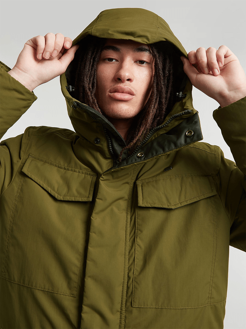 The Vodan padded jacket features an adjustable peak hood with a raised front for added coverage. A concealed 2-way zipper and elasticated inner cuffs offer wind protection, while inner drawcords allow you to cinch the waist for a personalized fit. Designed with a hanger loop and an inner pocket for everyday convenience.