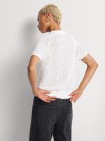 Lightweight knitted polo Pointelle features an engineered knitted design with semi-transparent sections. Creating a difference in texture. Ribbed edges complete it.