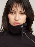 Snug sweater Asymmetric Zip is designed in a slim fit and offers a raised collar that can be folded over in to a turtle neck. The zipper at the side proceeds towards the shoulder. Leave it open to create a different look with an asymmetrical spread collar.