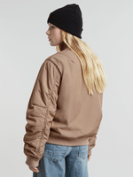 The Bomber Transitional is a lightweight jacket with soft padding, designed in a loose fit. Pleated sleeves enhance the 3D effect, while welt waist pockets with hidden snap buttons offer functionality. Finished with a ribbed collar and hem for a classic bomber silhouette.
