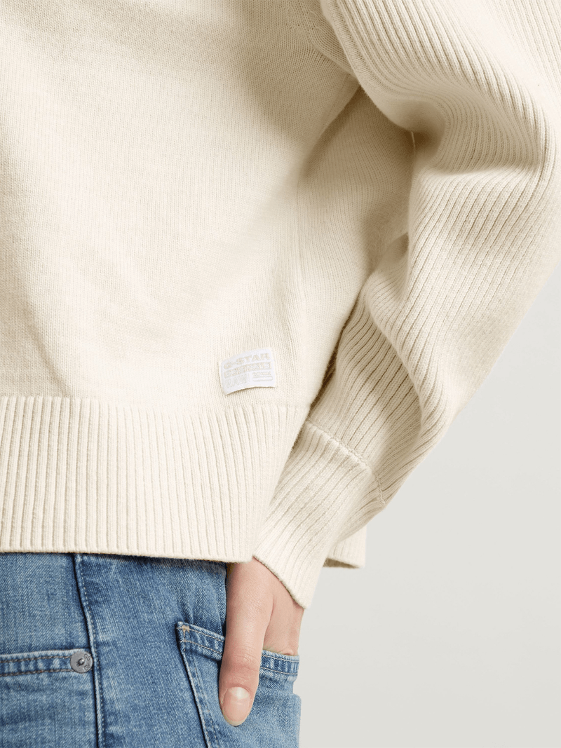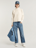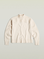 The Boxy Jumper Mock features a relaxed, cropped silhouette with a loose fit. Ribbed shoulder detailing extends into an upper arm panel, while a 3D stripe at the front and back brings dimension and edge.