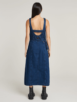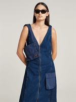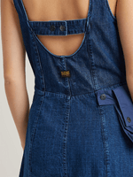 This utility-inspired dress combines a feminine silhouette with cargo detailing for a modern edge. Made from faded indigo denim, it features multiple pockets, a structured fit, and a front zip closure. The soft wash adds a worn-in look, while the tailored cut ensures a flattering shape. Perfect for casual days with attitude.