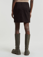 Mini skirt Cargo offers deep flap pockets with hidden snap buttons at the thigh. The added belt loops allow for a belt when preferred.
