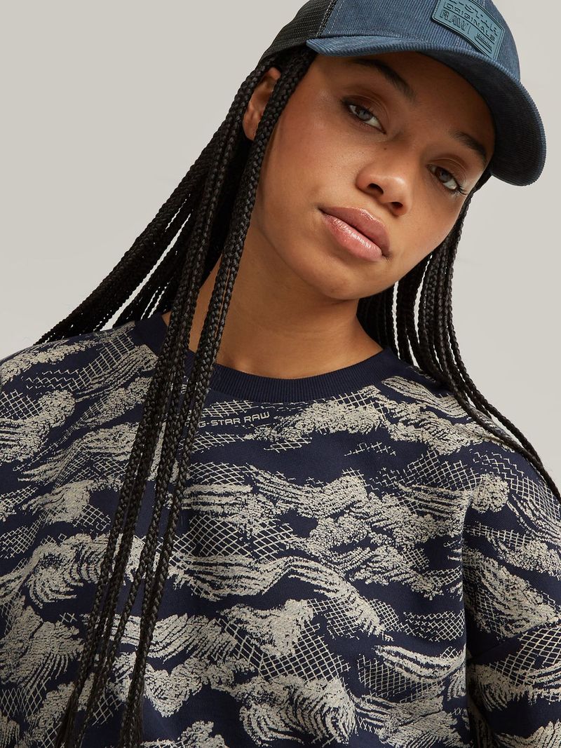 Sweater Lace Allover Print is designed in a loose fit and shows a wave inspired print. Ribbed details make it even more comfortable to wear.