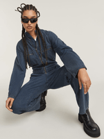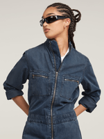 Coverall Mechanics features a loose fit for ease of movement and a utilitarian edge. The raised collar and front zipper closure add a structured look, while adjustable straps at the waist and sleeves allow for a personalized fit. Finished with zipper chest pockets, side insets, and back pockets for functionality.