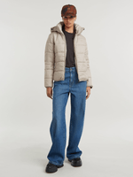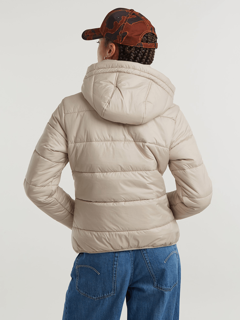 Designed for all-weather wear, the Meefic Quilted Jacket is crafted from a water-repellent fabric with horizontal stitch-through detailing. The detachable hood features a high-raised front and adjustable drawcords for enhanced coverage. Hidden snap-button waist pockets and stretch-bound edges provide both function and comfort.