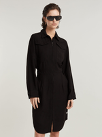 Shirt dress Military is designed in a straight fit. Adjust the snap buttons at the back to create more shape around the waist. The 2- way zipper allows for a slit at the front.