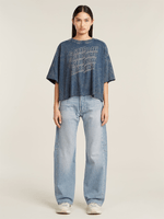 This oversized T-shirt makes a bold statement with multiple G-Star logos layered across the front. Crafted from soft cotton in a rich blue hue, it offers a relaxed fit with dropped shoulders for a laid-back vibe. A standout piece that brings energy to everyday styling.