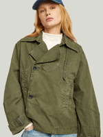 This oversized short trench coat blends classic design with a modern, relaxed fit. Crafted in a muted green tone, it features a wide collar, adjustable cuffs, and a belted waist for versatile styling. The lightweight fabric adds ease and comfort, making it perfect for transitional weather with an edge.