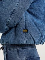 Bomber Cocoon is designed in a shorter length and has a padded design. Offering a raised front with a zipper closure. Flap pockets at the waist are placed angled and have a snap button closure. Pull the cord at the waist to create even more volume.