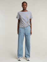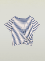 This lightweight top features a soft chalk-toned stripe pattern with a knotted front detail for a flattering touch. Designed with a relaxed fit and short sleeves, it blends casual comfort with feminine style. Ideal for easy, everyday outfits with a twist.