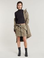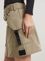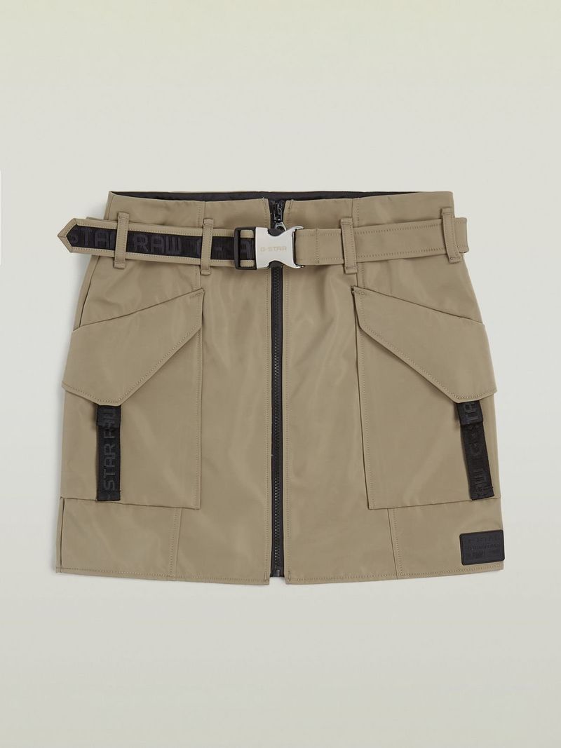 Mini skirt Tech is cut in a straight fit. Either wear it high up with a gathered waist or wear it lower on the hips. The flap pockets at the side are finished with a woven tab and a hidden snap button. The G-Star RAW tape at the back of the belt adds detail.