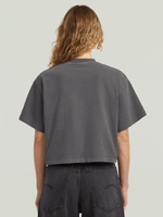 The Washed Boxy T-Shirt features a relaxed fit and cropped length, offering a modern and casual look. The round neckline and short sleeves enhance its versatile design, while the graphic detail adds a unique touch.