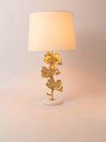 Elevate your living space or bedroom with our striking Ginkgo Leaves Table Lamp. The sculptural leaf-shaped base sits on a natural white marble base and is finished with a fabric shade. Place it as an accent piece on a sideboard or bedside table.