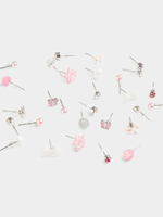 Enjoy this stunning 15-pack of pink stud earrings, featuring delicate stars, butterfly and bow designs. These earrings add a touch of chic style to any outfit, they are versatile and easy to mix and match.