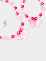 This matching set features a pink beaded necklace, bracelet, and ring, perfect for adding a touch of sparkle to any outfit. Perfect for mixing and matching with her favorite look.