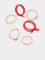 Keep your hair stylish with these pink and red 6-pack hair elastics. Made of elastic, they are durable and flexible. Perfect for adding a pop of color to your hairdo.