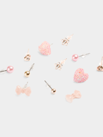 Enjoy this stunning 6-pack of rose gold and pink stud earrings, featuring delicate heart, flower and bow designs. These earrings add a touch of chic style to any outfit, they are versatile and easy to mix and match.