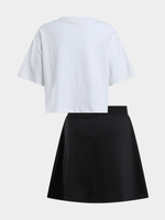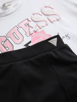 Stay cool and comfy in this Guess Pure White Set featuring a t-shirt and skort. Made from 95% cotton and 5% elastane, this set is perfect for everyday wear. Designed in Bangladesh, this set is perfect for all-day play.