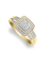A glamorous 9ct Gold and Diamond dress ring with a remarkable triple cushion design. The ideal choice for an evening affair, Set in yellow or white Gold