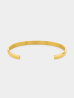 This stylish open ended bangle is expertly crafted in Gold Plated Stainless Steel. Stainless Steel is a scratch resistant, hypoallergenic and well-priced metal.