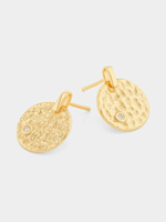 Expertly crafted in Gold Plated Sterling Silver, these elegant beaten disc drop earrings glitter with pavé set Cubic .