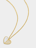 Elevate your jewellery collection with this exquisite heart pendant. Crafted from gold-plated sterling silver with stunning cubic zirconia and mother of pearl accents. Versatile and elegant, perfect for any occasion. Non-toxic and hypoallergenic. Makes a thoughtful gift.