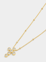 Expertly crafted in Gold Plated Sterling Silver, this beautiful cross pendant on a chain catches the light with round-cut Cubic Zirconia in textured bezel settings.