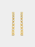 Expertly crafted in Gold Plated Sterling Silver, these beautiful hoop earrings glitter with bezel set round-cut Cubic Zirconia.