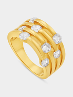 Expertly crafted in Gold Plated Sterling Silver, this bold ring features a multi-row design glittering with scattered round-cut Cubic Zirconia.