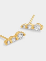Expertly crafted in Gold Plated Sterling Silver, these beautiful stud earrings feature a trilogy of round-cut Cubic Zirconia.
